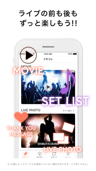 • 対応のライブでチケット画面を提示すれば チケットレスで入場可