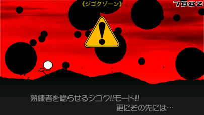 こうしてどんどん進み、最終的にゲームオーバーになるまでどれだけ進めたかを競うゲームです。一定の距離に達すると獲得ポイントが2倍になるジゴクモードが発動します。ここまで達するのにはかなりの鍛練が必要ですが、レアなジゴクモードめざして根気よく挑戦してみてください。