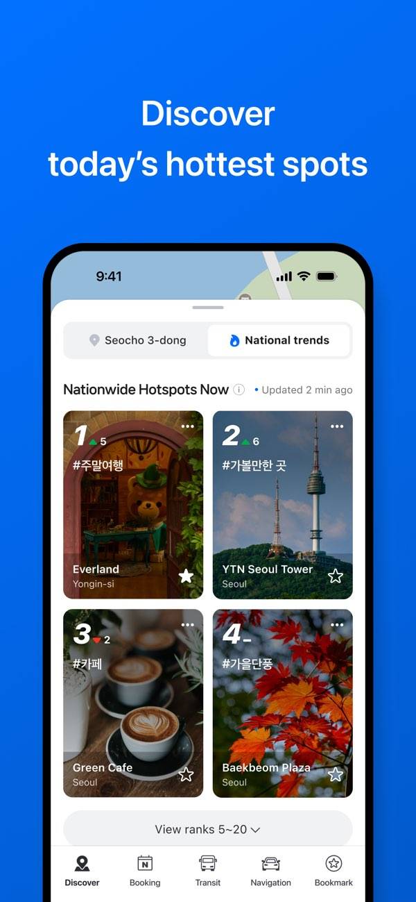 韓国国内のマップを表示したり、目的地までのナビゲートをしたりできます。韓国以外の土地は表示できませんが、マップの細かさや精度は良好。旅行や出張の際に活躍してくれるアプリでしょう。