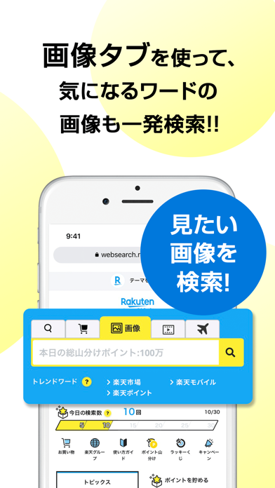楽天ポイントを貯めることができる。ただ他の検索アプリと比べた時、あまりいいとは思えない。起動するだけで1ポイントもらえるってのがなければ、わざわざ使うとは思えない。