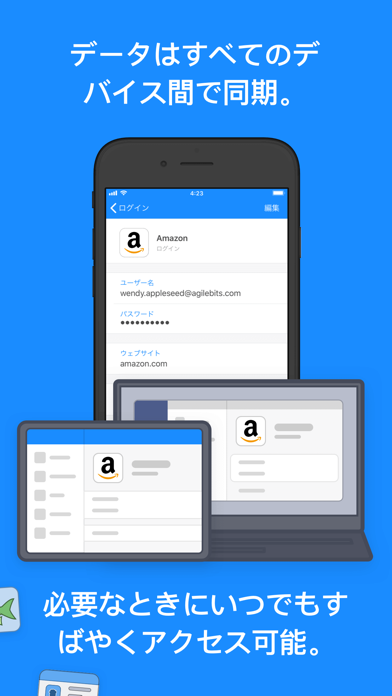 さまざまなデバイス間で情報を同期することが可能です。パソコンからスマホ、タブレットまで、どのデバイスからでもパスワード情報にアクセスできます。移動中でも外出先でも、すぐに使えるのが魅力的。