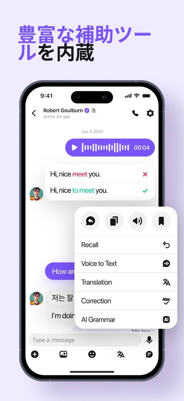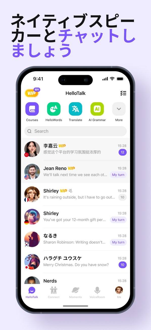 ネイティブとリアルに話せるチャット&音声通話