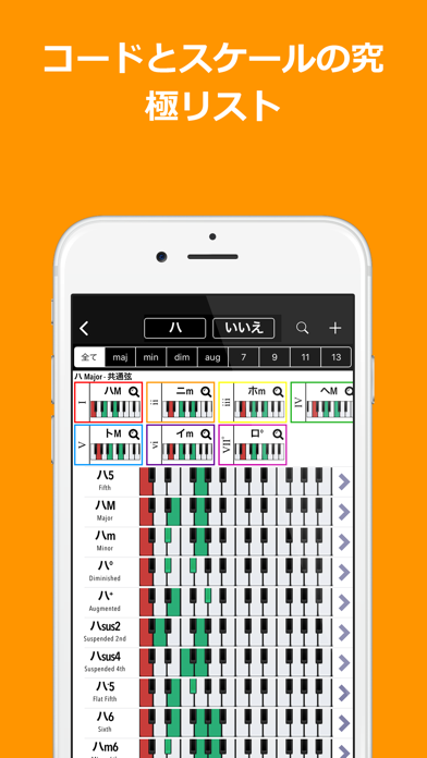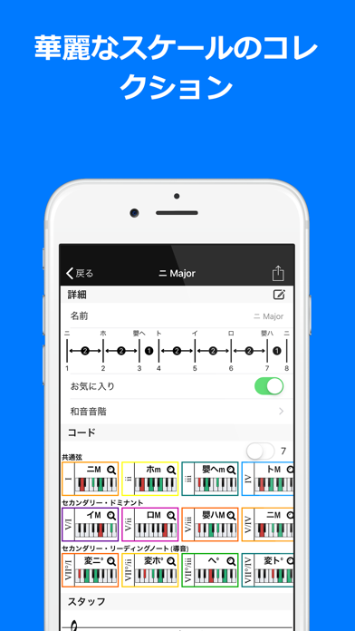 - 1,500以上の和音を収録した和音・音階ディクショナリー