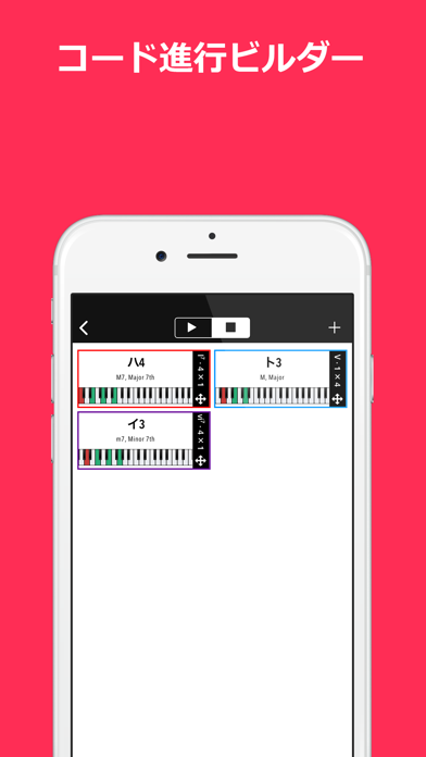 新しくコードを登録し、コード進行を作って保存・公開できます。作曲するときには特に便利な機能。ほかのユーザーが作ったコード進行も見られるので、インスピレーションを得るのにもぴったりです。