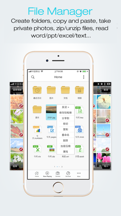 ダウンローダーとファイルビューアー完備のファイル管理アプリです。avi、flv、wma、pdf、zip、rarなど、多彩な形式のファイルを整理し、閲覧できます。