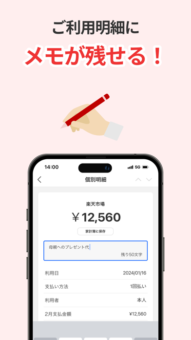 - 家計簿機能で月ごとの使いすぎをチェックできる