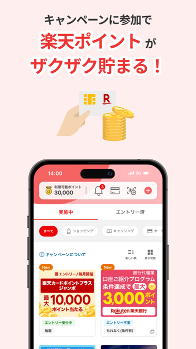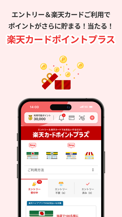 開催中のキャンペーン情報が一覧で確認でき、タップひとつでエントリーも完了。特に「楽天カードポイントプラス」では、対象店舗を利用するだけでポイントが増えるので、ちょっとした買い物でもお得になります。商品の購入前にアプリを見ておけば、ポイントの取りこぼしが減らせますよ。