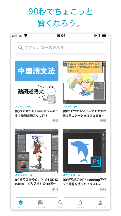 90秒動画を使ったミニ講座が豊富。プログラミングやビジネススキル、日常生活の知恵など、多岐にわたるトピックが短時間で学べます。忙しい日常の中で、ちょっとした隙間時間を有効に使える点が大きなメリット。