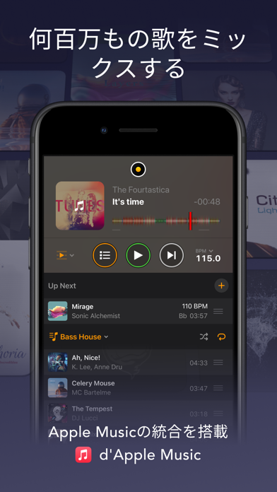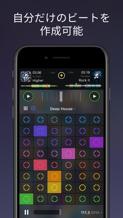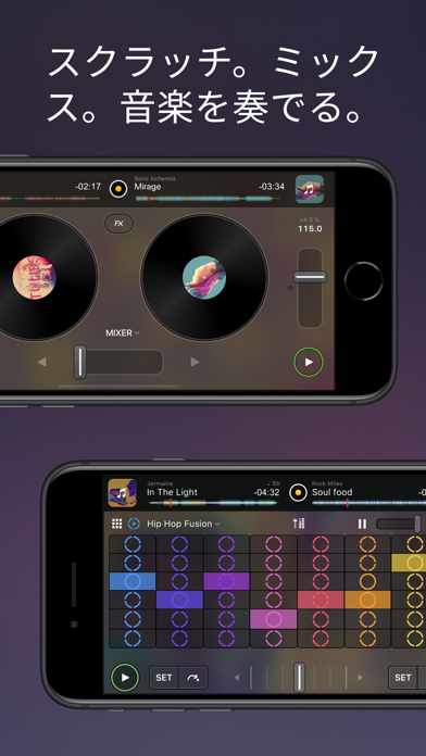 スマホやタブレットでDJプレイが楽しめるミキシングアプリ。ターンテーブルを再現した画面で、スクラッチなどの直感的な操作が可能。クロスフェードやループなどを駆使して、誰でも手軽にミキシングができます。