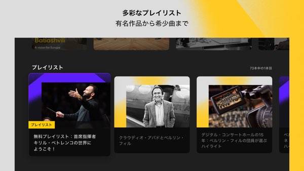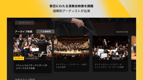 視聴できるコンテンツが豊富で、クラシック音楽好きにはたまらないアプリです。本アプリでは、コンサート映像・ドキュメンタリー・インタビューの3つの視点からクラシックを堪能できます。いつでも好きなときに! クラシック音楽を手軽に楽しめます。