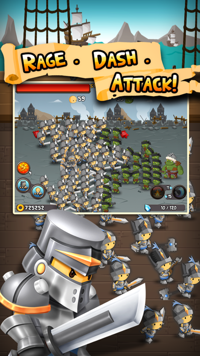 兵士を何人送るかを決め、あとは送り出すだけ。攻撃は自動的に行ってくれるので、ゲーム中やることと言えば、コインを回収することだけです。後は集めたコインを使って更に兵士を強化し、次のバトルの準備をします。