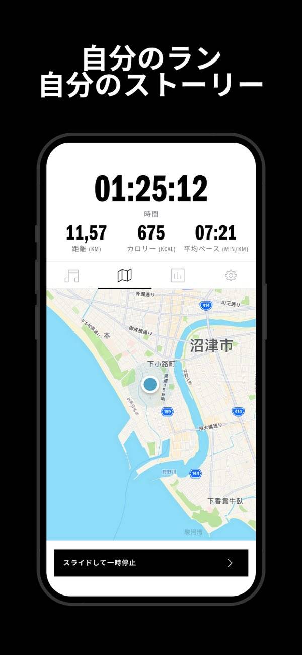 歩数、距離、地図を記録してくれて、一時停止もスライドでできるなど、とても良いです。