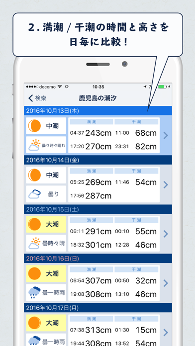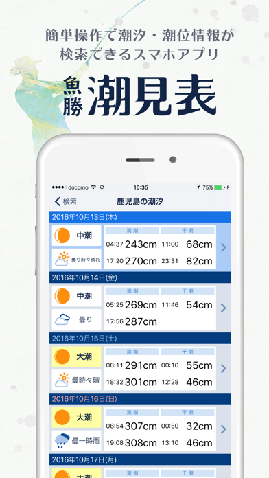- 簡単操作で全国各地の満潮・干潮の時間をリアルタイムで確認