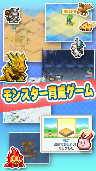 モンスターを捕獲・育成するRPGと開発シミュレーションが合体したゲーム。無人島を開拓して観光客を呼び込み、収益を上げましょう。