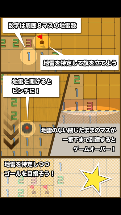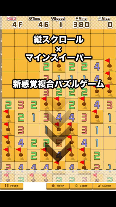 かつてないルールを取り入れた縦スクロール型のマインスイーパーです。