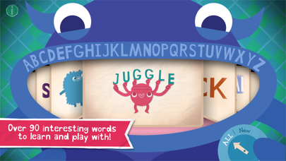 ▲イタズラなモンスターがバラバラにしたアルファベットを並び替え。お片付けと英語を一緒に学習。