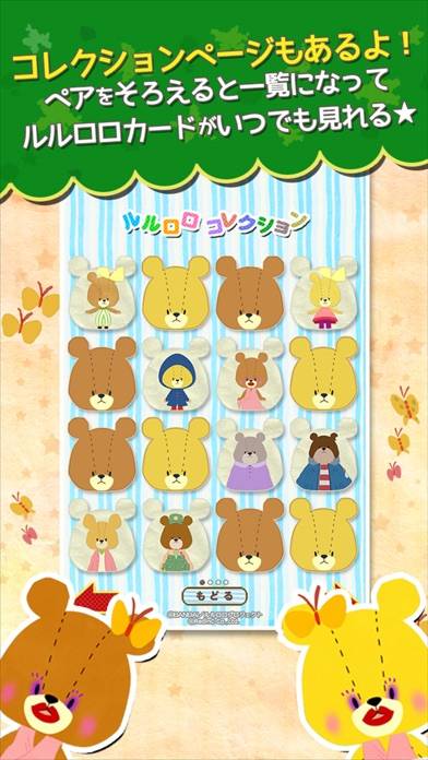 ペアにしたカードは「ルルロロコレクション」で閲覧できます。カードの種類は全部で64枚。ルルロロだけでなく、ちょうちょや傘のイラストなどさまざまな種類があります。タイムではなくコンプリートを目標に遊んでみてもいいですね。