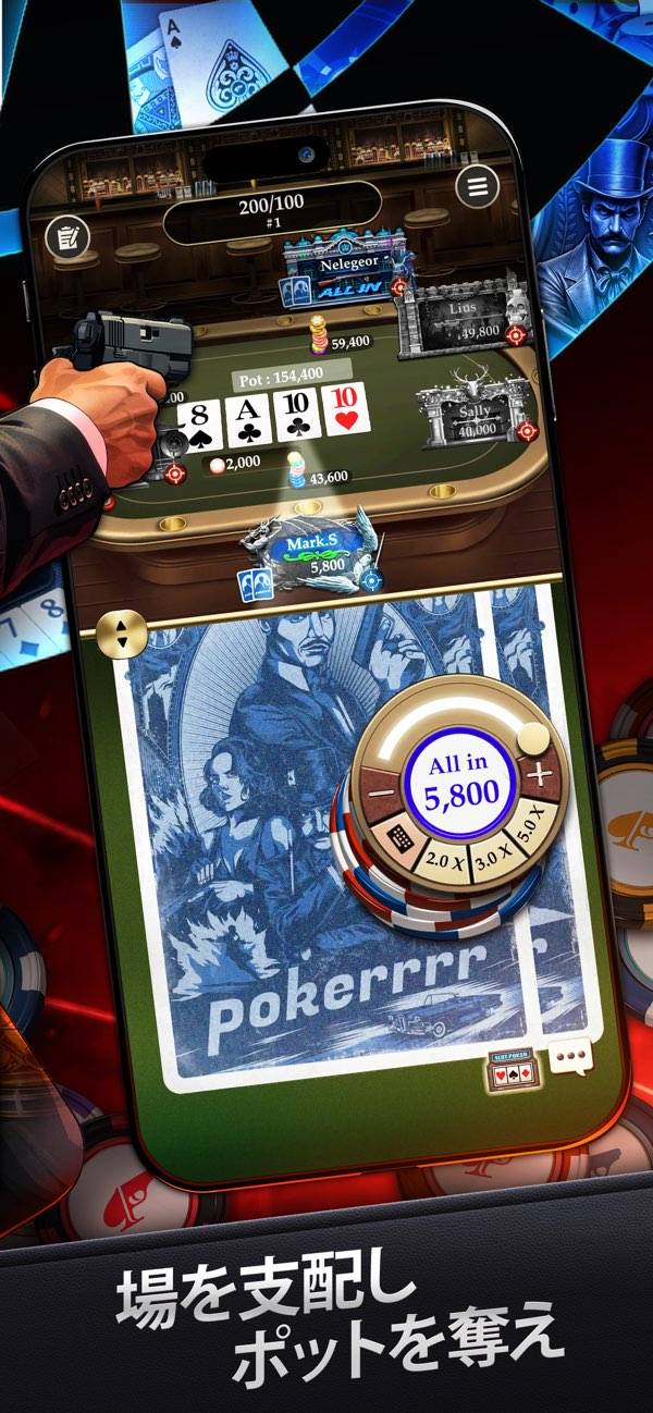 スワイプ操作でカードをチラ見したり、コインをベットできます。直感的な操作性のおかげで、臨場感アップ。スワイプ感度を調整できるため、本当にカードを触って遊んでいるような感覚を手軽に体験できます。