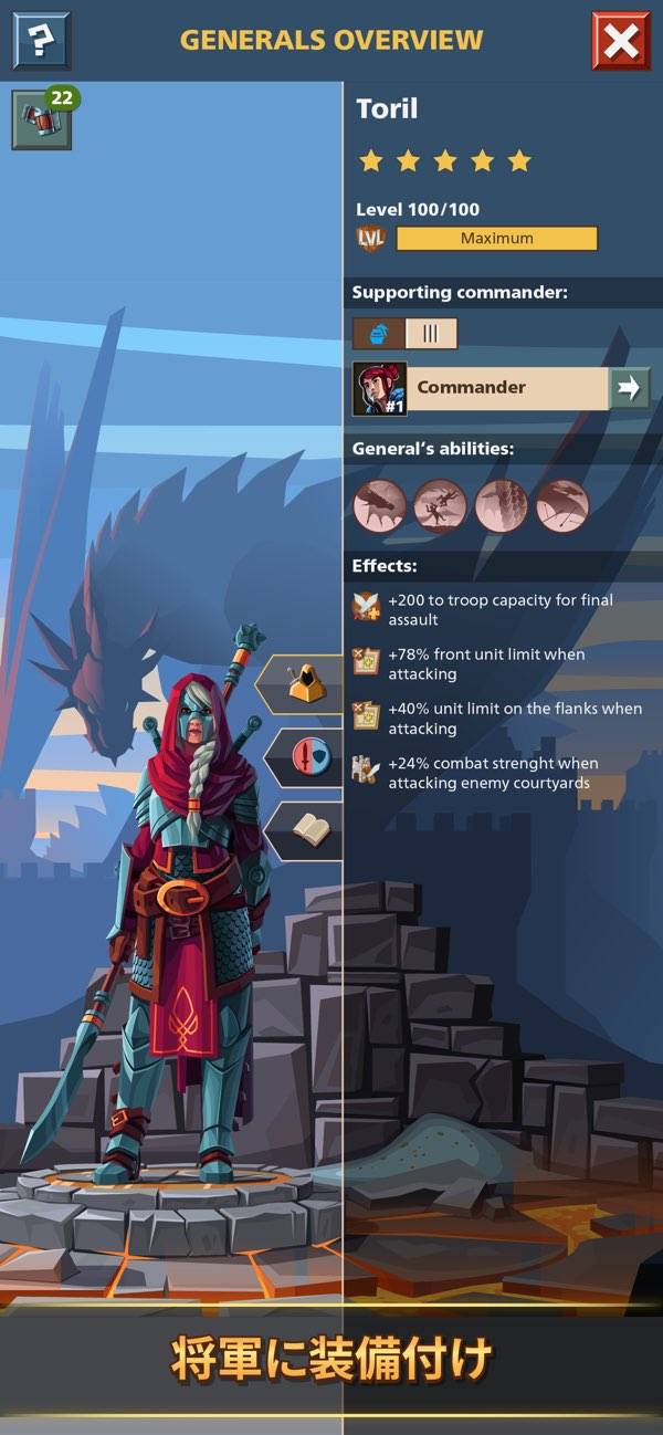 スロットに兵器を装備して、城の防御を固めましょう。敵に攻め込まれたときに防御性能を引き上げ、略奪を防げます。城がより発展すれば、左右の城壁のスロットも開放され、さらに多くの兵器を装備可能に。