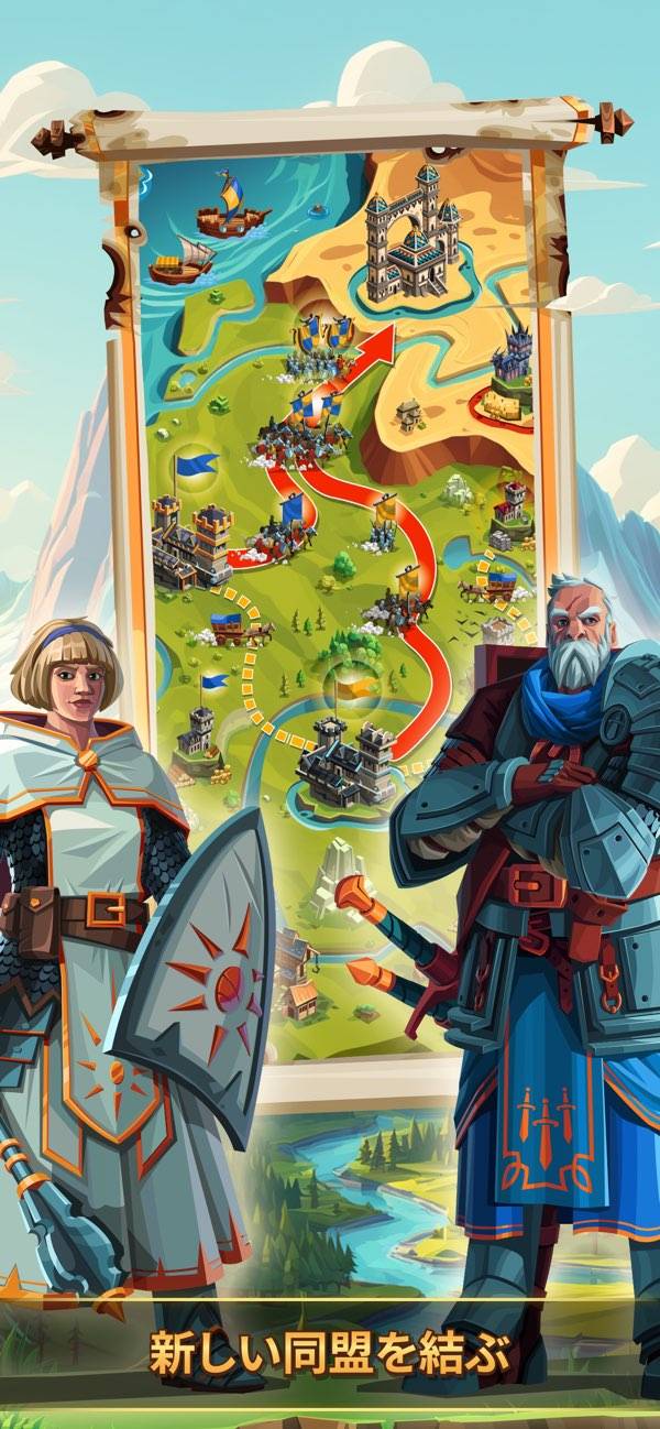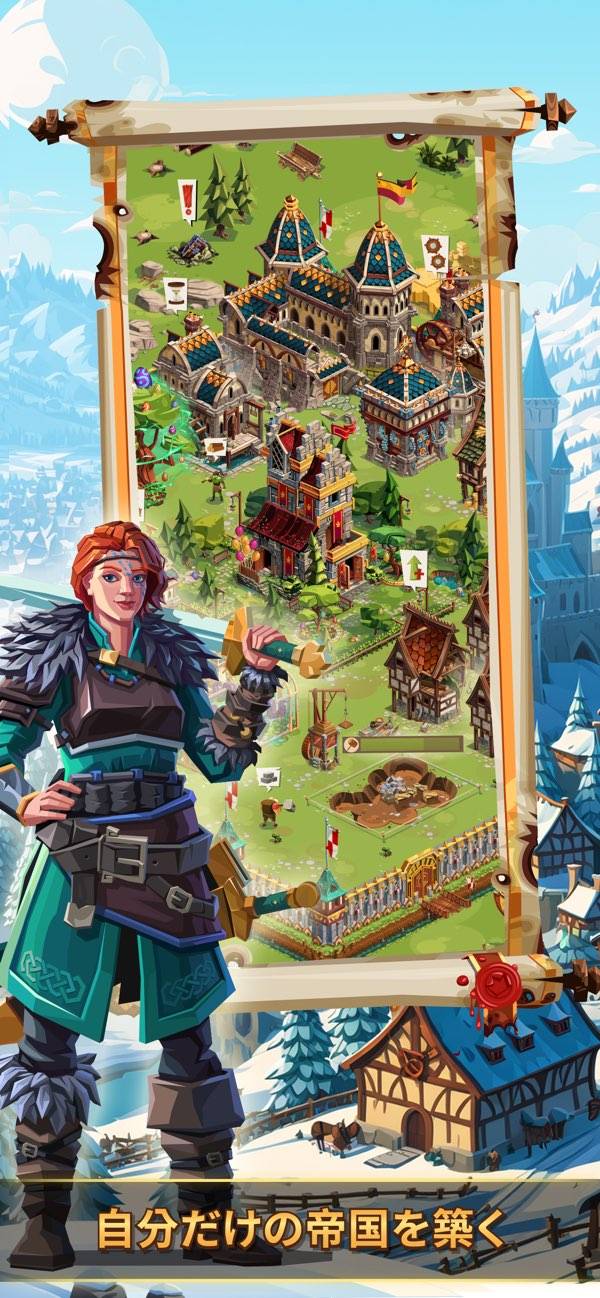 城にさまざまな施設を建てて、自分の国を築いていくストラテジー。資源を使って兵士を雇ったり兵器を開発したりして、戦力を高めましょう。ワールドマップにあるほかのプレイヤーの拠点には攻撃を仕掛け、資源などの略奪が可能。周囲との対立や協力も含め、多彩な戦略を楽しめます。