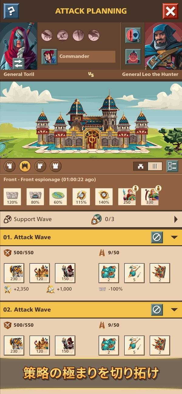 ワールドマップにはほかのユーザーの城やNPCの領地が配置されています。城に攻撃を仕掛ければ、資源を奪い取ることが可能。もちろん逆に攻め込まれる可能性もあるので、協力体制を築くなどコミュニケーションも大事です。