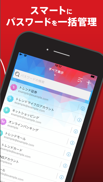 マスターパスワードを覚えておくだけで、ほかのすべてのパスワードを管理できます。個々のサービスへのログインも、本アプリから直接可能。パスワードやIDの入力も必要ありません。