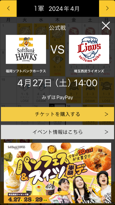 ソフトバンクホークスの試合日程やチケット情報を確認 観戦サポートアプリ