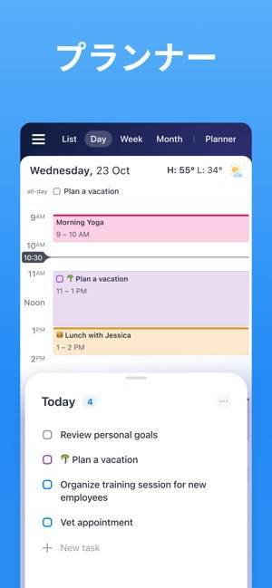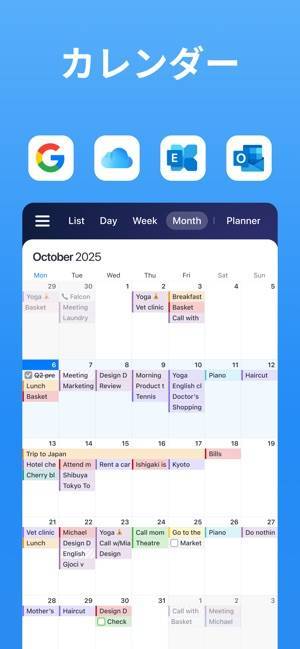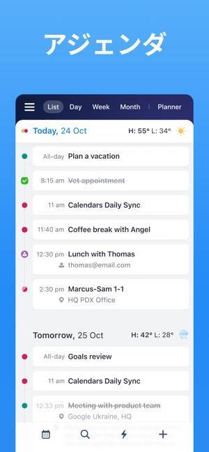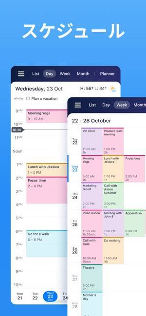 便利な機能がひとつにまとまったスケジュール管理アプリ。独自のスライド機能で日、週、月のスケジュールを即座に切り替えられます。さらにスケジュールには場所や色、ビデオ通話など詳細な予定を入力可能。手間なくスケジュール管理が行えるようになり、日々の生活を効率的に進められるでしょう。