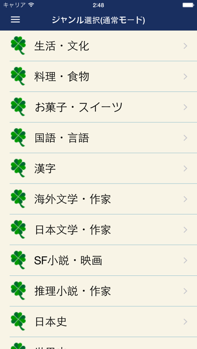 あらゆるジャンルの雑学と一般常識を網羅したクイズアプリです。通常モードでは解説なし、ジャンル別の問題と解答をシンプルに楽しむことができます。