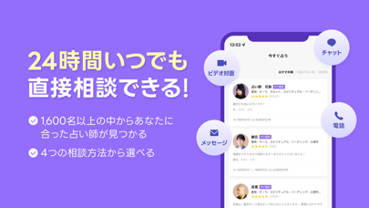 • 好きな占い師を選んで悩み相談。仕事や恋愛のアドバイスを受け取れる