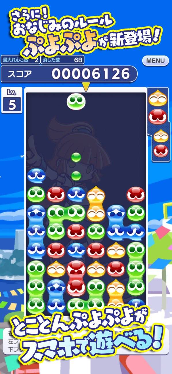 通常のぷよぷよとは若干操作性が違うので最初の慣れは必要だと思いますが、消す楽しさはしっかり引き継がれてるのでよいアプリだと思いました!なにより、従来のぷよぷよではありえないコラボの多さ!!キャラが沢山いるので色んなスキルもあるとこがしっかりやりこみ、収集ゲームとして、機能してると思いました!