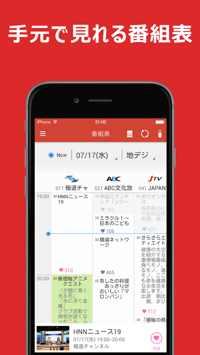 視聴したい番組を、番組表の中から検索してタップ。画面下部にある「録画 / 視聴予約」を選択して完了です。