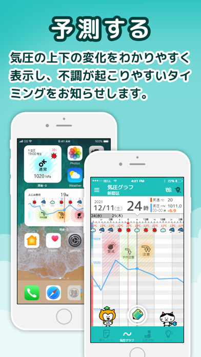 頭痛持ちのためダウンロードしてみたのですが、どういう時に頭痛が起こるんだろうという習性的なものが少し分かります。気圧が低くなるとやっぱり頭痛が起こりやすくなるのが分かってきて、早めに対応できるようになりました。キャラクターもすごくかわいいので楽しんで使えます。