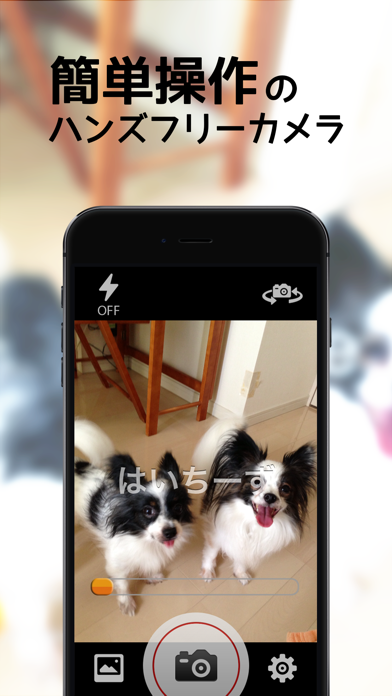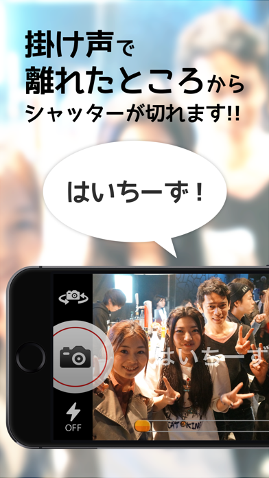 シャッターを切る瞬間が、いっそう楽しくなるカメラアプリです。最大の特徴は「はいちーず」といった掛け声を認識して、自動でシャッターが切られる機能。