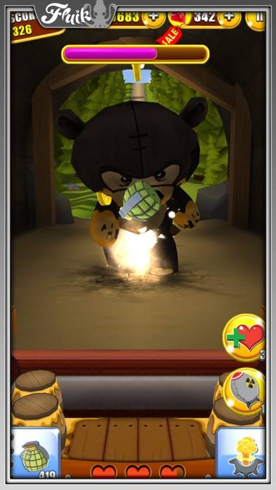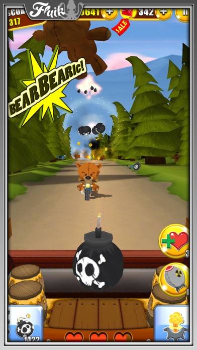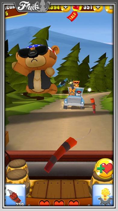 プレイヤーは荷台からフリック操作で爆弾を投げて、熊を吹っ飛ばすのですが、たくさんの熊を同時に吹っ飛ばせた時などはとっても気持ちいいです。フリックの強さで投げる距離が調整できるので、いい塩梅のフリックが要求されます。