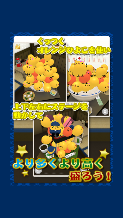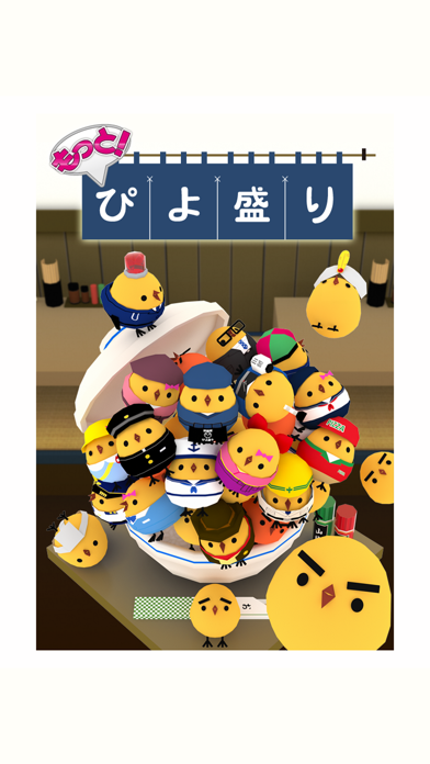 ひたすら''ひよこ''を盛っていくゲーム。メニューで色々な食べ物のステージが選べ、盛るひよこが色々なコスプレしてて超可愛い‼︎360度回転して視点が変えられるしイイ‼︎なかなか慣れずにひよこを盛る事が難しいです。コロコロ転がってばかり…。楽しみながら遊べます。