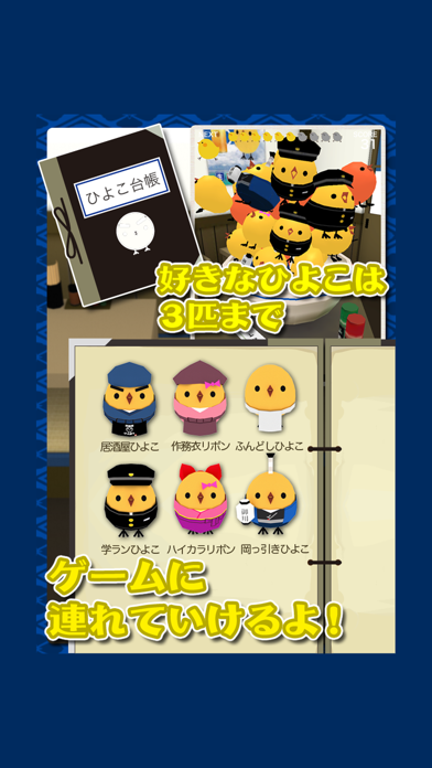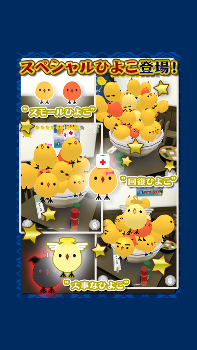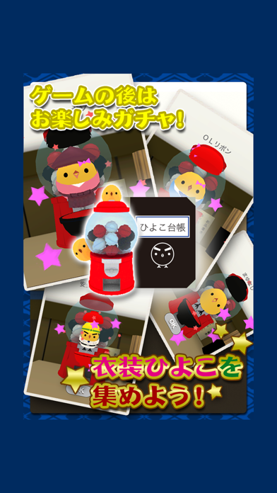 - まわすと様々な種類のひよこが出てくるガチャシステム搭載