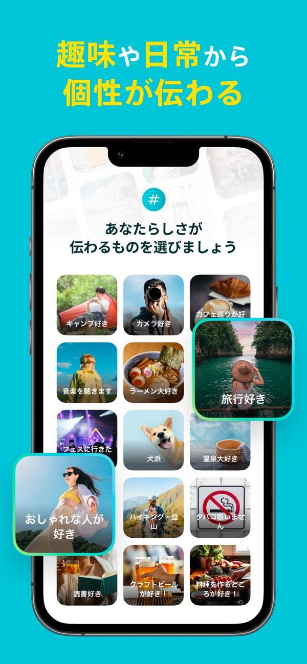 趣味や好きなことが同じ恋人を探せるマッチングアプリです。会員数は2,000万人以上で、マッチングアプリ業界No.1。そのため、都心でも田舎でも条件を絞って好みの人を見つけられます。またGPS機能を使って、近場の出会いやすい人を探せるのも魅力的。実際に70万人以上の人たちが、恋人を見つけています。