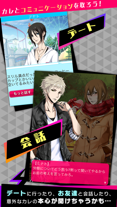 動物がイケメンキャラに変身する恋愛シミュレーションゲームです。リアルタイム連動により、キャラクターがプレイヤーと同じ時間を過ごせます。また、24種類の性格タイプを選んで育成し、キャラクターの反応やしゃべり方が変わる楽しさも魅力。豊富なアバターで、自分だけのキャラを作成できます。