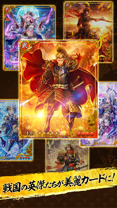 戦国時代がテーマの美麗なカードゲーム。自分のデッキを育ててリアルタイムで20vs20での合戦を行うのでつい熱くなる(^^)戦力が高いとやはり有利ではあるけど戦略も大事♪