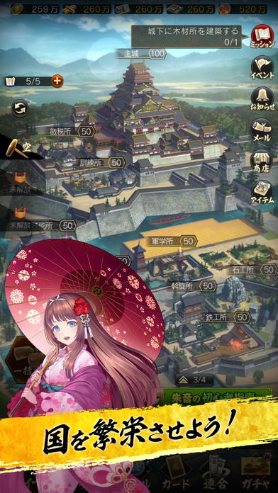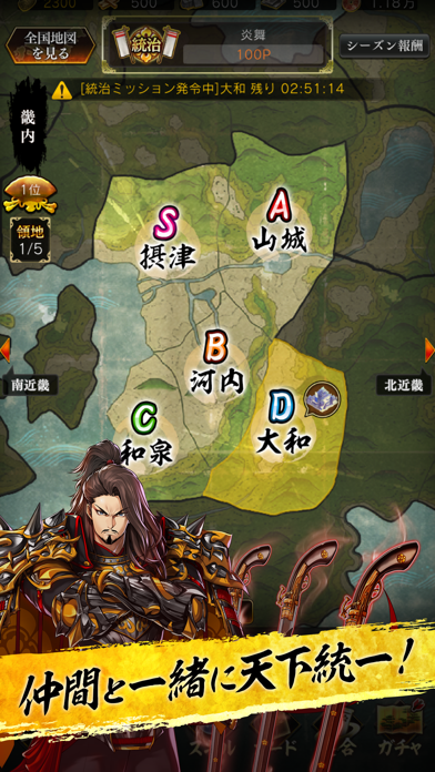 クエストクリアだけでは武将カードは強くならない。強くなければ合戦で勝利できない。強化と進化を繰り返し、天下無双の将を育て上げろ!