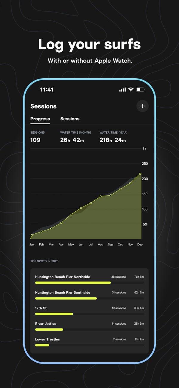 またApple Watchとも連携可能。サーフィンセッションを記録し、アプリに残せます。