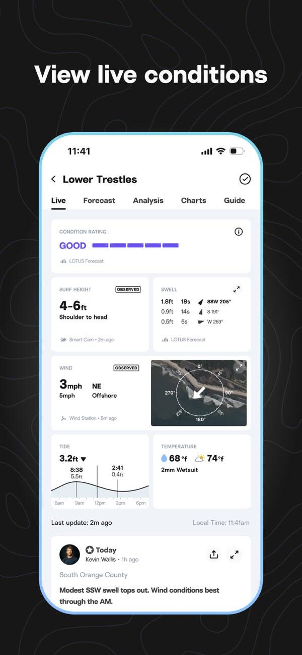 鎌倉や藤沢などの波の様子を見られる、サーファーにおすすめなアプリ。日本語訳がされていないところが残念ですが、自分のスキルに合わせた波をアプリでチェックでき、天気予報などもわかります。