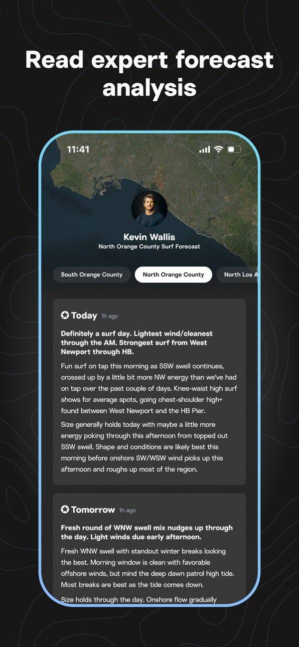 どれぐらいの実力か、近くのサーフィンスポットまでどのくらいかなどを設定。お気に入りのサーフスポットもあらかじめ登録でき、その地点の波だけをチェックすることも可能です。
