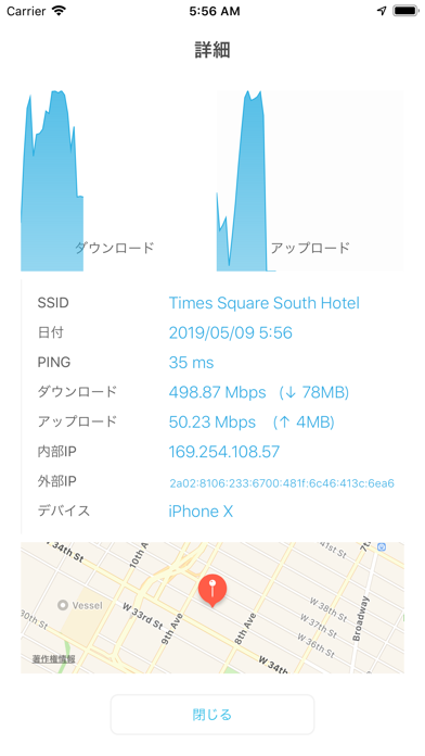 - 通信速度と一緒に計測場所も履歴に! 回線が良好だった場所を保存可能