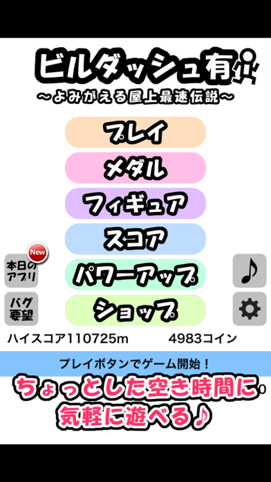 ステージ中に登場するガチャガチャを集めるのも1つの楽しみですが、やはり本アプリのメインの面白さはビルを越えて進みながらどこまで進んでいけるかという点。ランキング機能でどこまで進めたか世界中のプレイヤーと競争することができるので、上位目指してプレイすると面白いですよ。相当数のプレイヤーがいるので自分の記録が伸びる度に順位もぐんとアップする感覚がやりがいを感じさせますね。