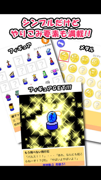 集めるフィギュアは「もう飛べない飛行石」や「さびたスマートホン」など、現実で引き当てたなら「いらんわっ!」と突っ込みたくなるようなものばかり。でもそのネーミングセンスにくすっと笑ってしまうのはたしかで、他になにが用意されているんだろう?と集めたくなる魅力を持ちます。
