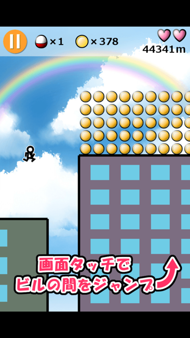ゲーム自体は、タッチだけの簡単操作でビルからビルへと飛び移って爆走する爽快アクション。爆走のスピード感や、長距離ジャンプを可能にする「ローリングストーンジャンプ」も見物です。