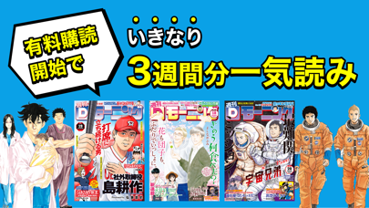 『週刊モーニング』が丸々読める専用のビューアアプリです。購読を開始してから、毎週バックナンバーが本棚に溜まっていくため、読み返したくなった時に便利。