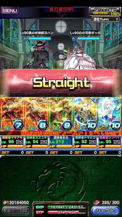 ゲーム内容としてはゲームの中で知り合うフレンド(リア友可)5人でダンジョンに入りモンスターカードを1枚ずつ出し、それでポーカーの役をつくりその役によって相手モンスターにダメージを与え倒すというもの。